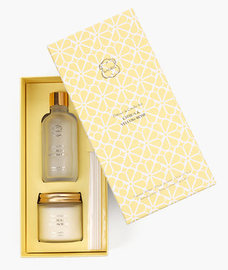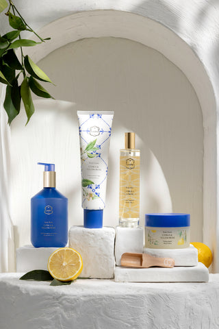 Our Citrus & Yellow Rose collection harmoniously blends vibrant citrus with rose petals. Notes of zesty lemon, yuzu and rose blend to create a bright, airy fragrance inspired by Spring's renewal and the constant calm of the Mediterranean.