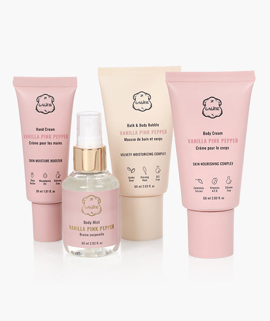 Take your self-care on the go with this limited edition Travel Kit. It includes a hand cream, body mist, bath & body bubble and body cream—perfectly sized for travel and designed to keep skin hydrated, refreshed and beautifully scented.