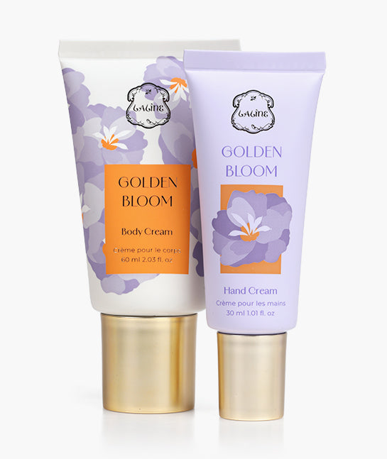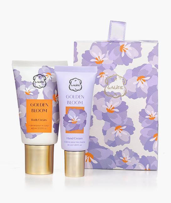 A petite expression of floral elegance. The Golden Bloom Mini Gift Set is the perfect introduction to the collection — featuring two nourishing essentials infused with soft musk, exotic orchid, and juicy plum.