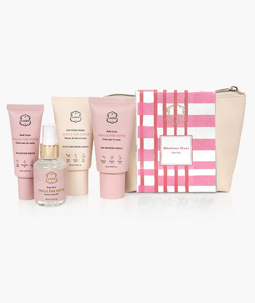Take your self-care on the go with this limited edition Travel Kit. It includes a hand cream, body mist, bath & body bubble and body cream—perfectly sized for travel and designed to keep skin hydrated, refreshed and beautifully scented.